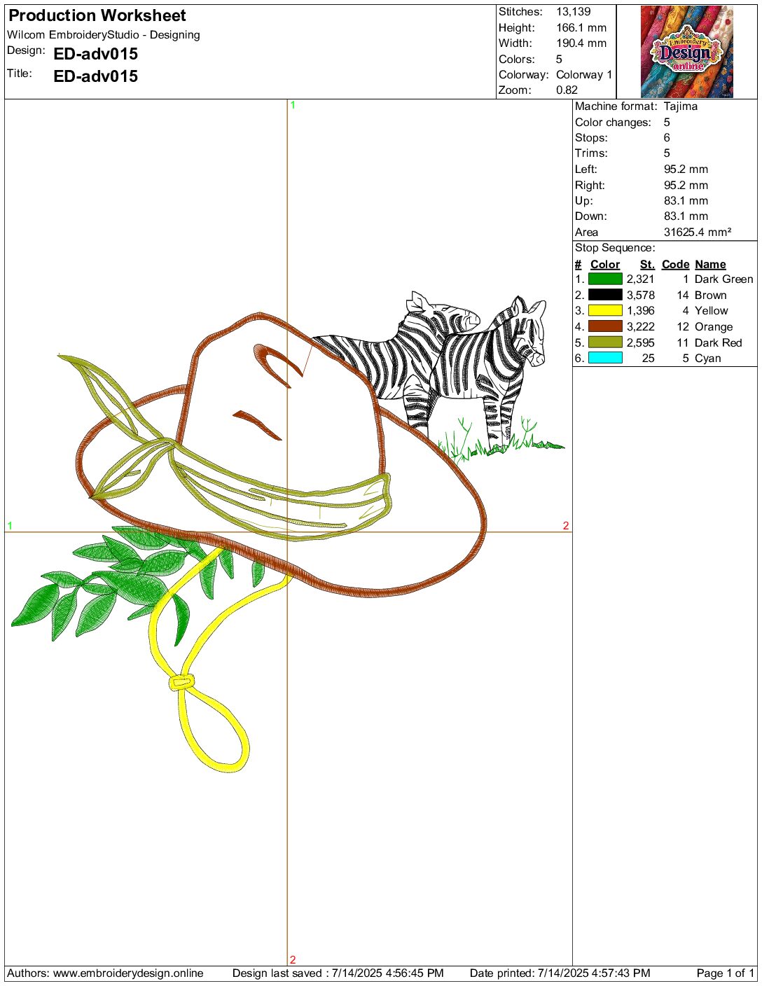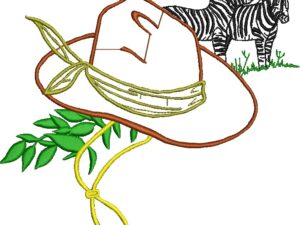 Safari Hat and Zebras Embroidery Design: This adventurous embroidery design features a wide-brimmed safari hat with a green leaf accent