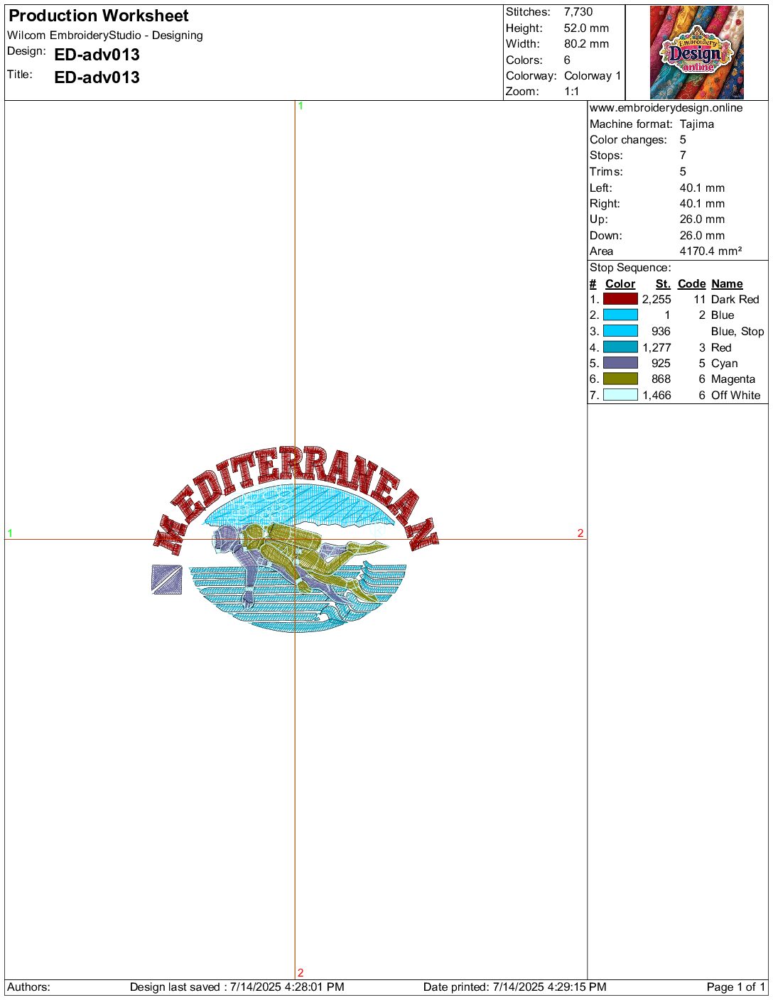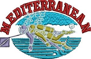 Mediterranean Diver Embroidery Design: This striking embroidery design features a scuba diver exploring the vibrant underwater world of the Mediterranean,
