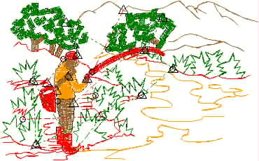 This detailed embroidery design features a brave firefighter in action amidst a lush forest landscape