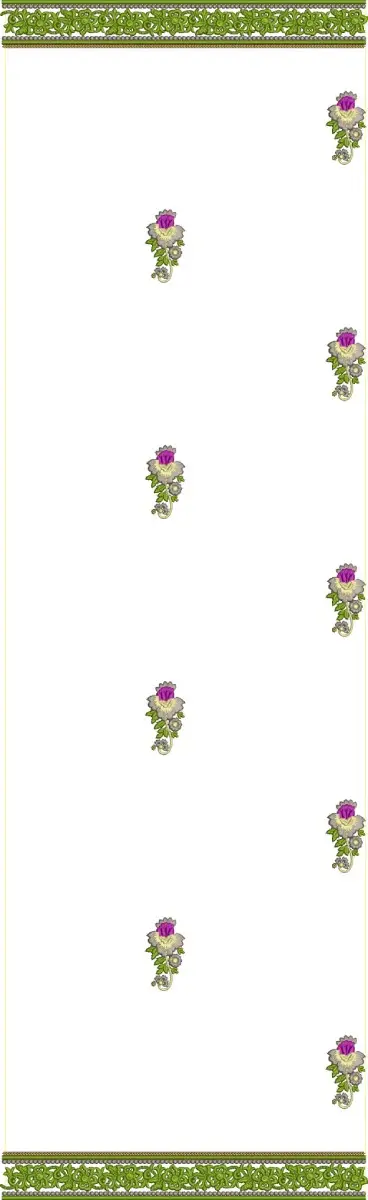 Carnation floral border machine embroidery design is a popular choice for adding elegant, repeating floral motifs to fabrics like sarees, dupattas, tablecloths, and clothing borders. This style often features stylized carnations (dianthus blooms) in vibrant purple, pink, and magenta shades with green vines and leaves for a classic, Victorian-inspired look.