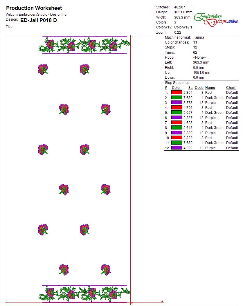 Carnation floral border machine embroidery design is a popular choice for adding elegant, repeating floral motifs to fabrics like sarees, dupattas, tablecloths, and clothing borders. This style often features stylized carnations (dianthus blooms) in vibrant purple, pink, and magenta shades with green vines and leaves for a classic, Victorian-inspired look.