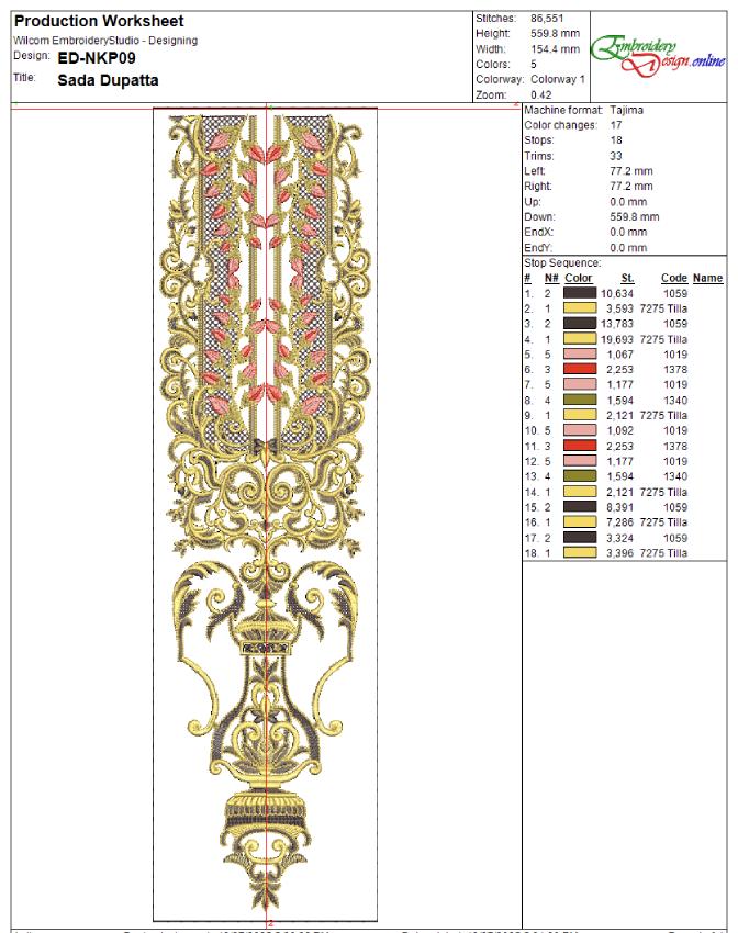 Suited for Pakistani, Indian, bridal, and festive ethnic wear, this embroidery combines netted lightness with luxurious craftsmanship for durability and visual impact. Ready for professional multi-head machine application—position on fabric to achieve a breathtaking, high-fashion result.