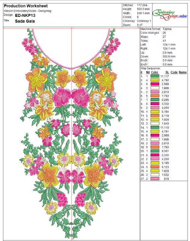 • Total stitches: 117,664 – ensuring high density, intricate layering, and a premium, professional embroidered finish