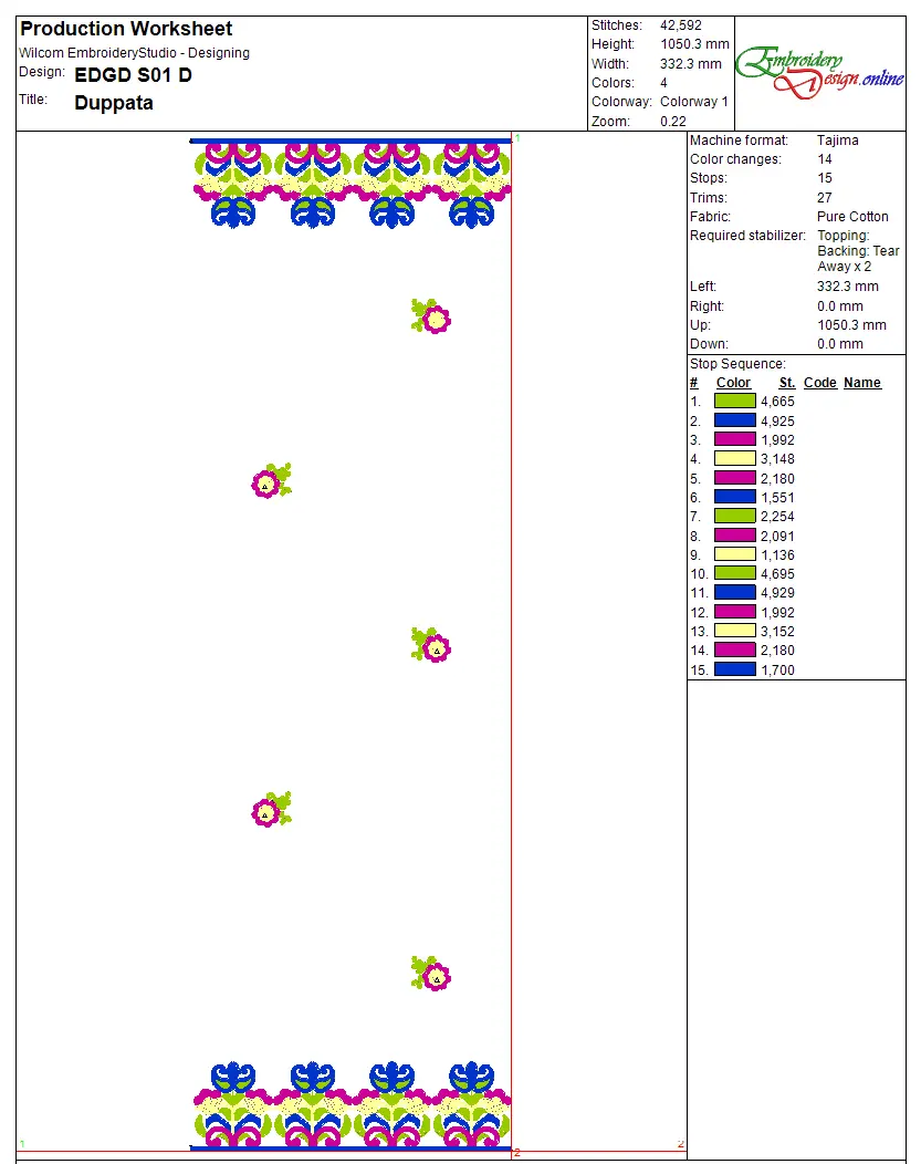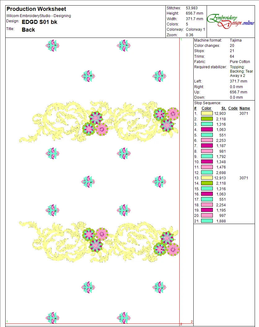 “Front” (code EDGD S01), tailored for the front panel of a traditional Pakistani dress such as an anarkali, frock, or formal kurti.