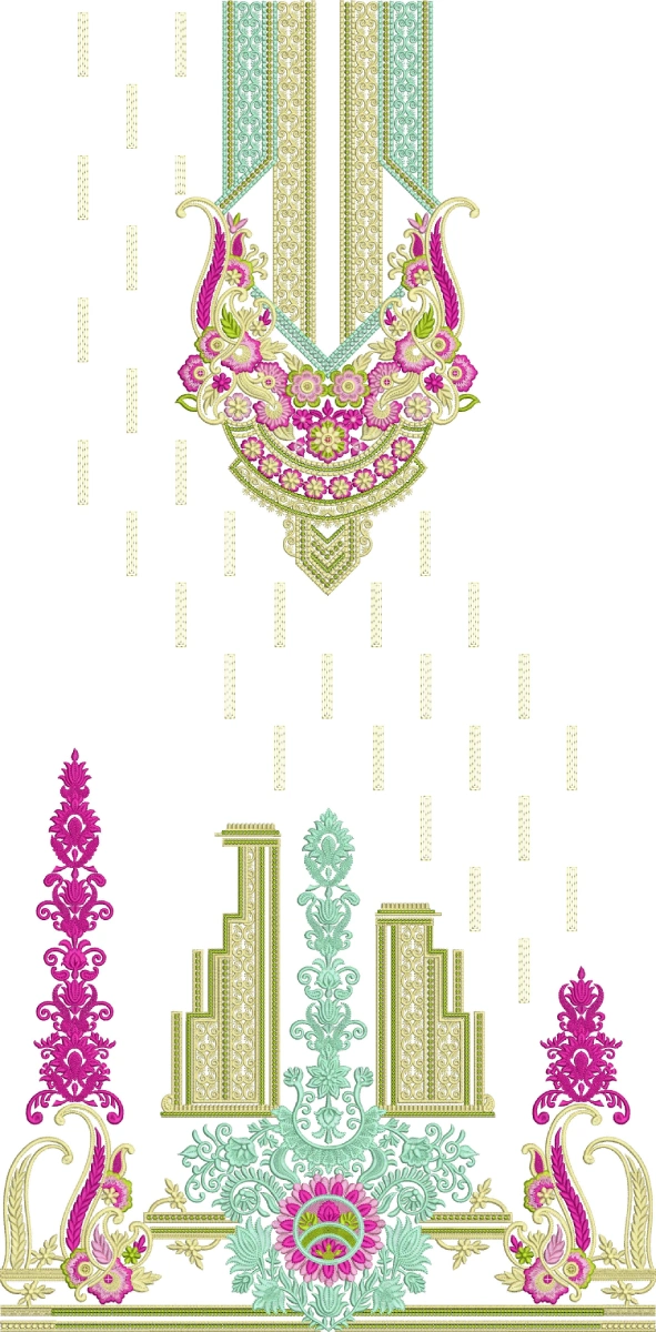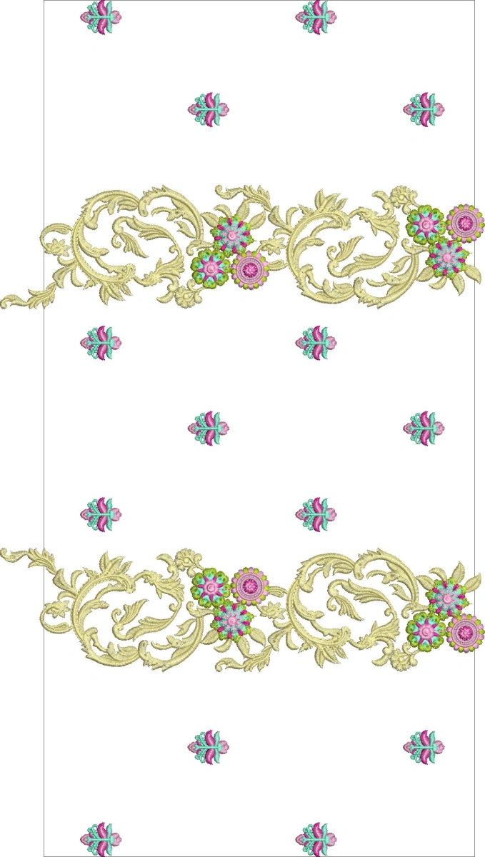 This sequin-enhanced, high-detail design is perfect for premium fabrics like chiffon, silk, or organza, delivering a glamorous, three-dimensional embroidered effect suitable for high-end Pakistani formal and bridal wear.
